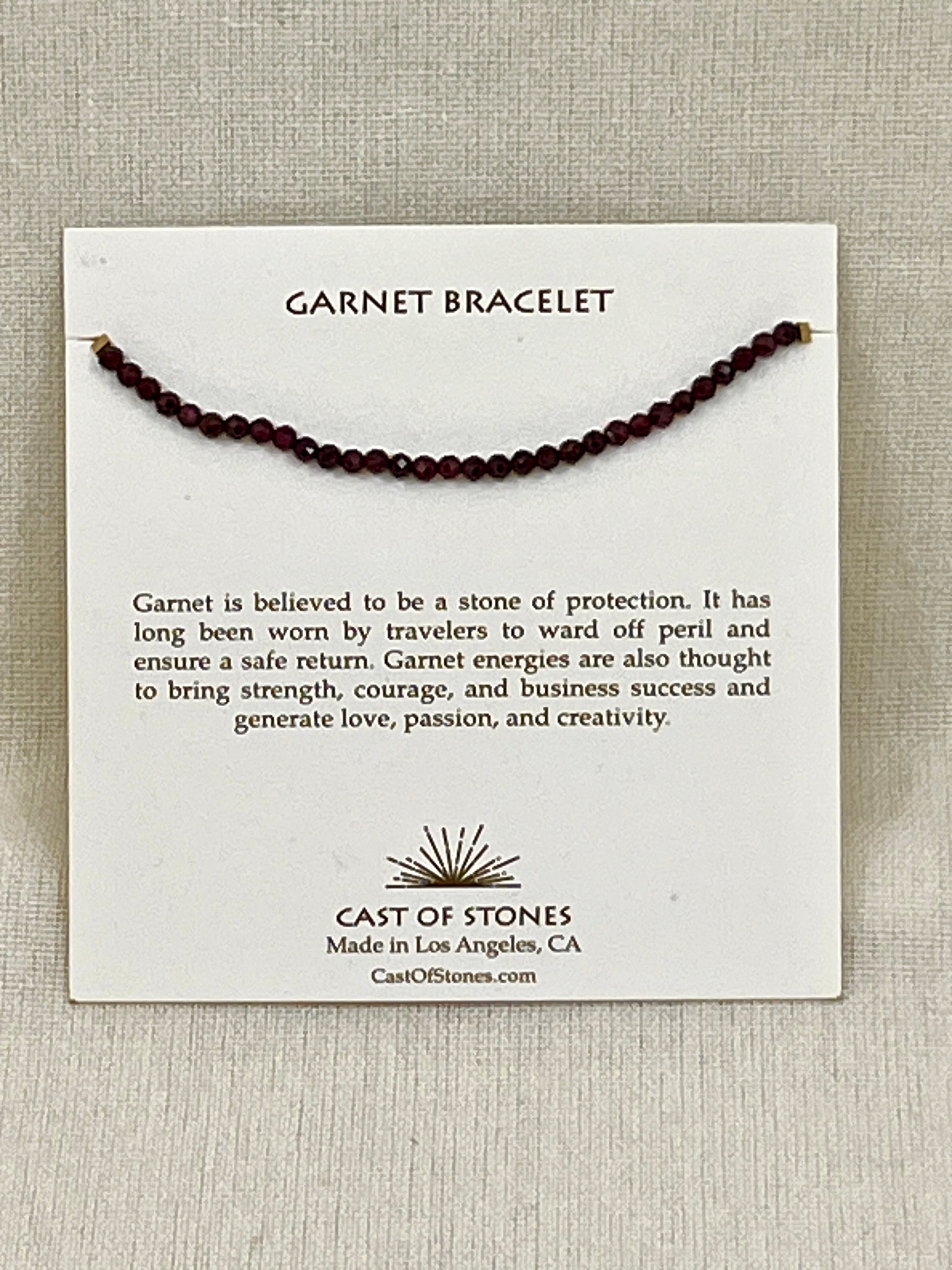 The Garnet Bracelet by Cast of Stones is a talisman of passion, vitality, and protection. Deep crimson in hue and rich with ancient energy, Garnet has long been revered as a stone of life force and devotion. It stirs the embers of the heart—rekindling courage, creativity, and confidence—while keeping you grounded in your purpose.